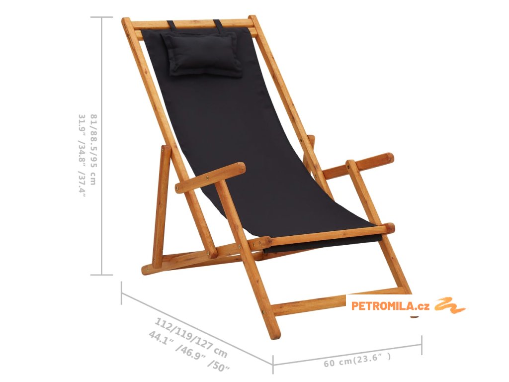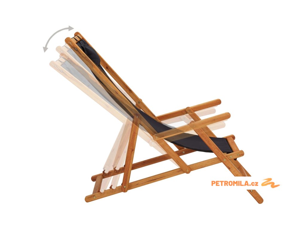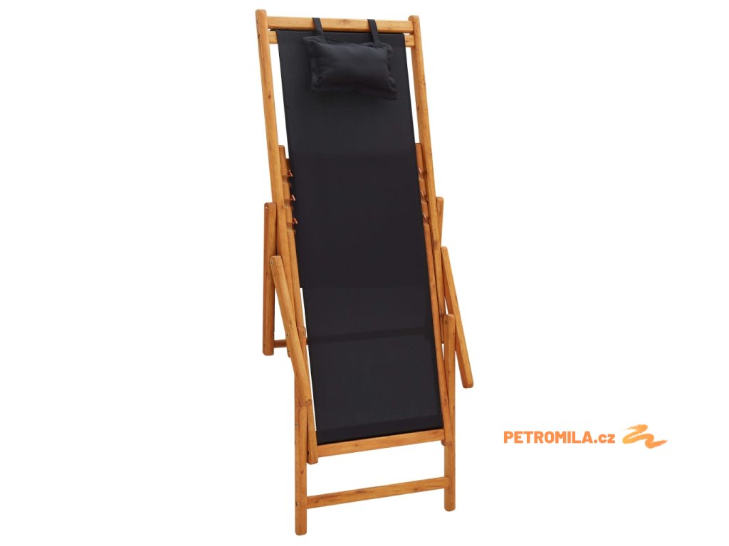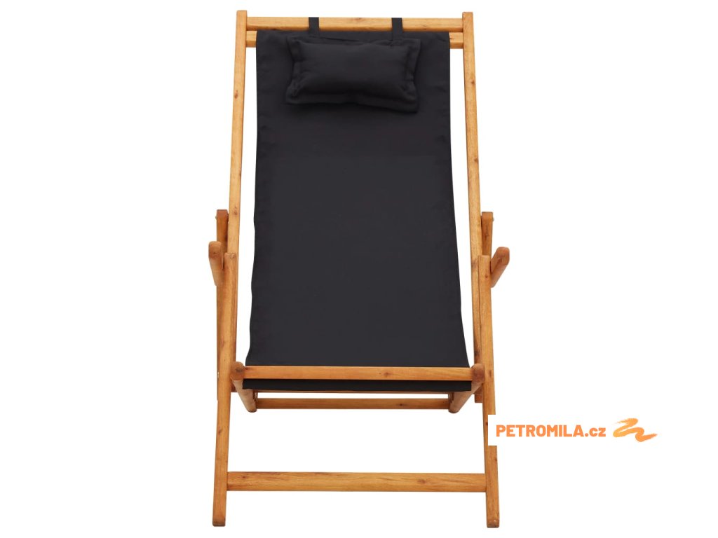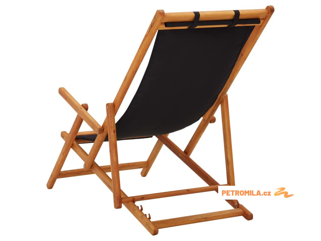 Skládací plážové křeslo masivní eukalyptus a textil černé