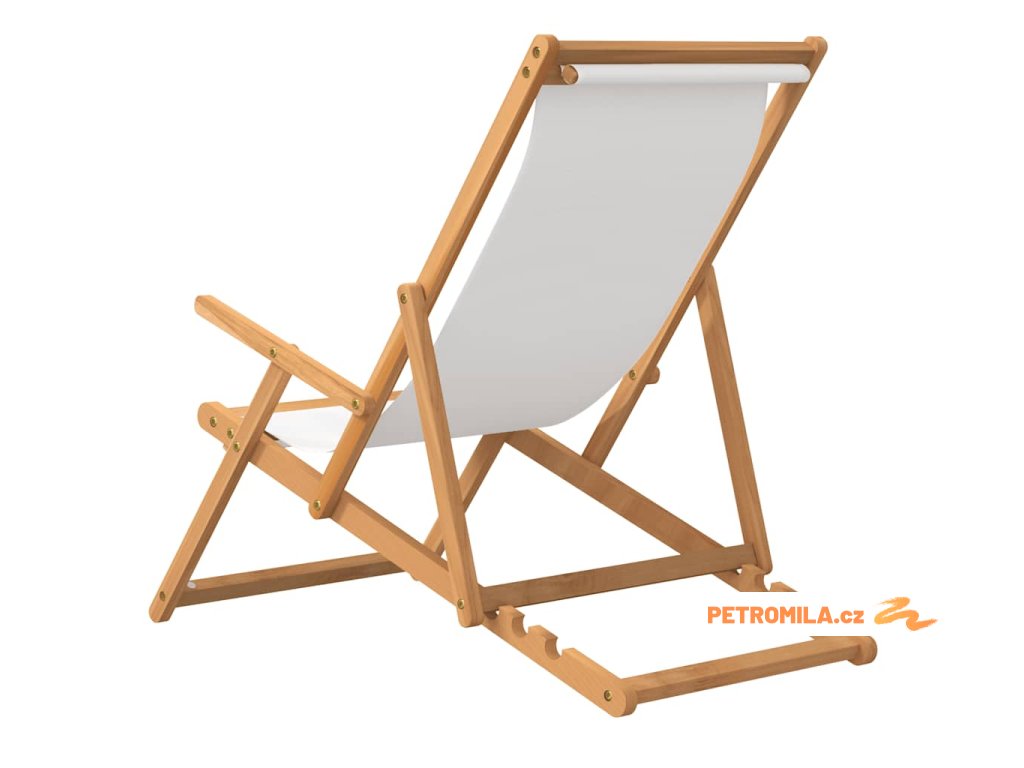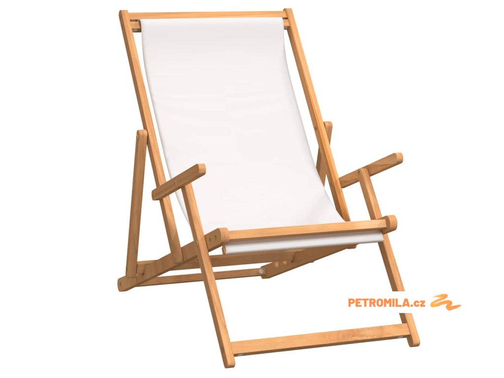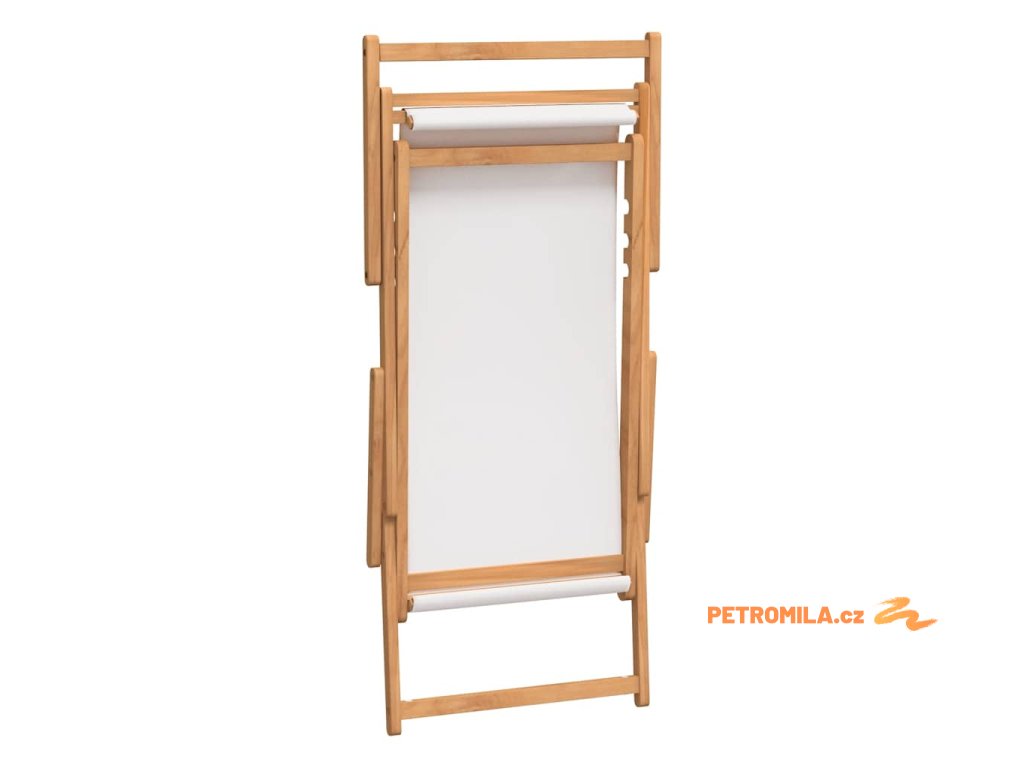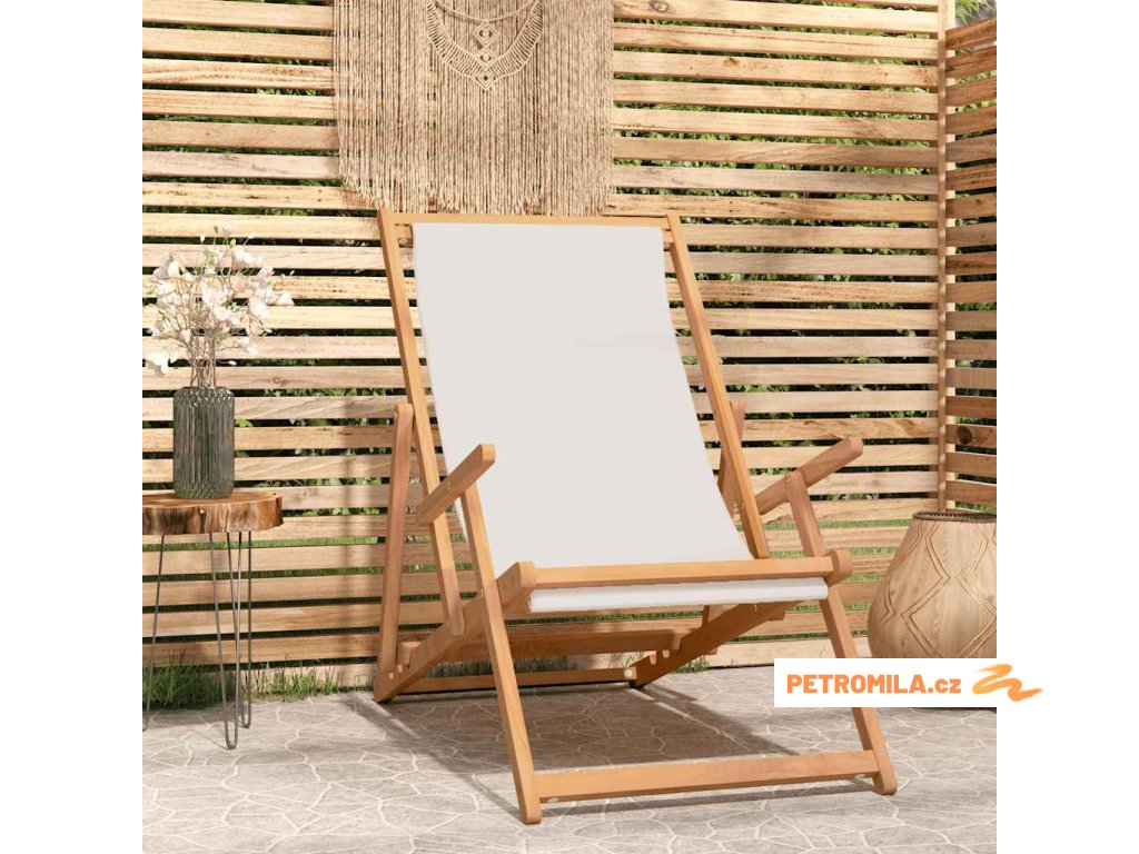 Skládací plážové křeslo masivní teakové dřevo krémové