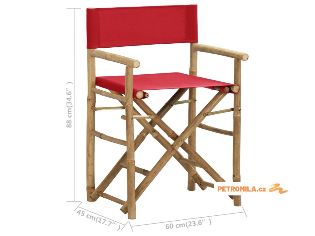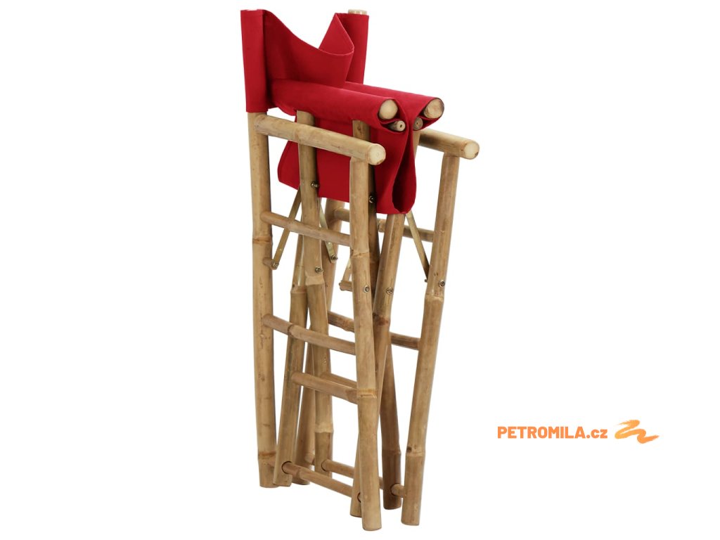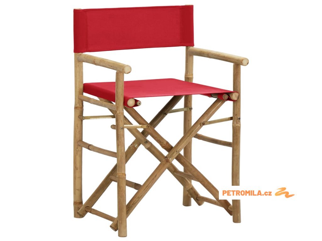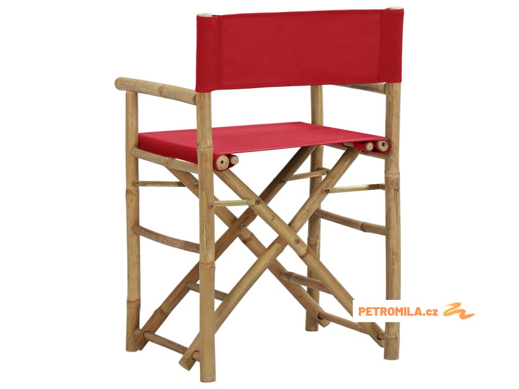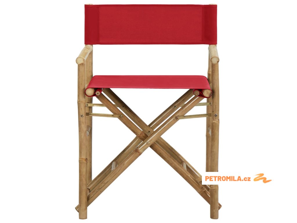 Skládací režisérská křesla 2 ks červená bambus a textil
