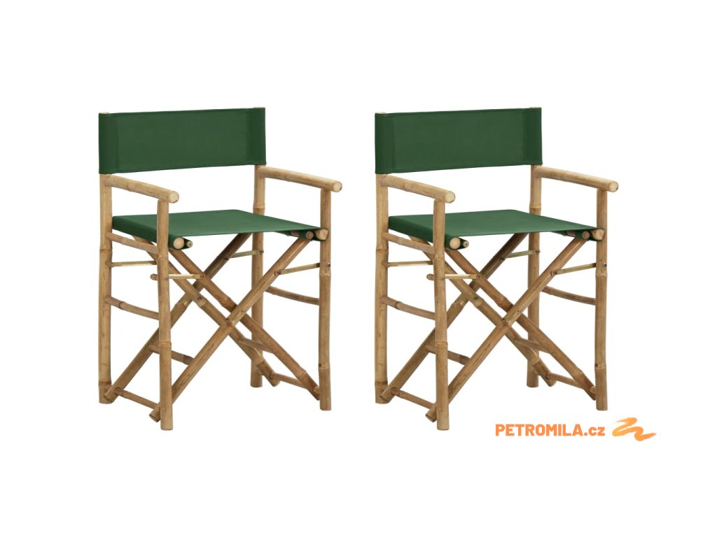 Skládací režisérská křesla 2 ks zelená bambus a textil