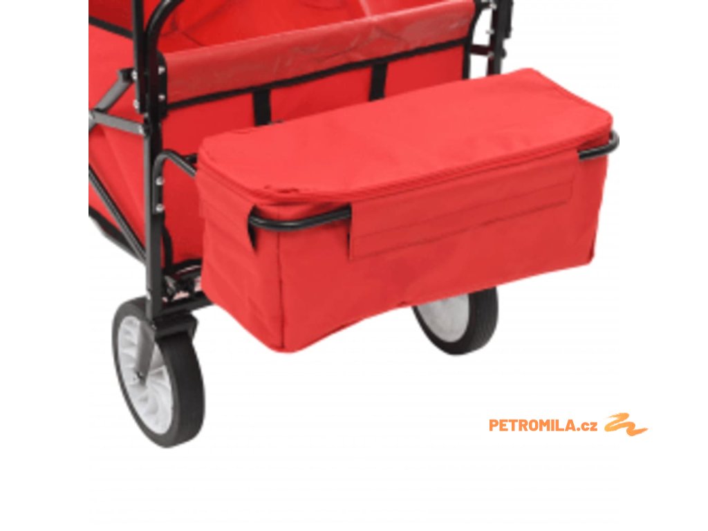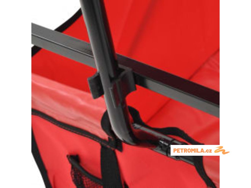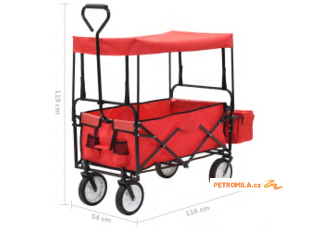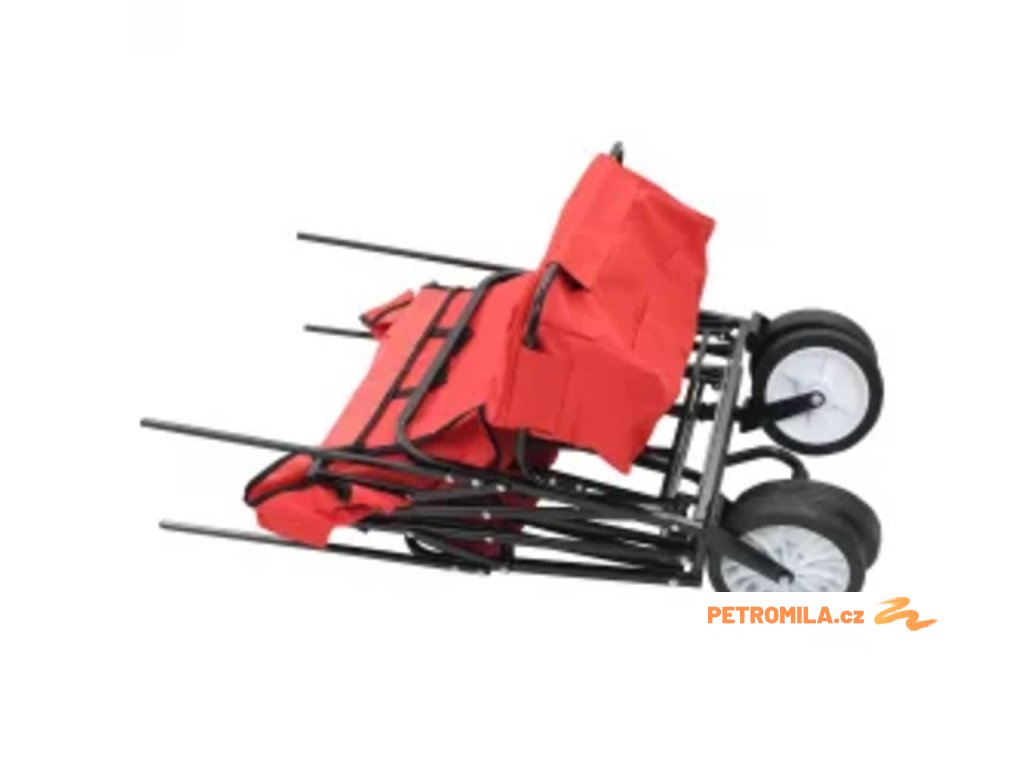 Ruční vozík je vyrobený z takových materiálů – ocelový rám a oxfordská 600D látka, které zaručují odolnost, dlouhou životnost a snadno se čistí. Vozík má nosnost 75 kg a snadno v něm převezete vaše nástroje, rostliny, hnojivo, nástroje a další. Přední kolečka vozíku rotují 360° pro snazší přejíždění před nerovný a náročný povrch. Polstrovaná rukojeť umožňuje dobrý a pohodlný úchop. Náš ruční vozík je skládací, takže ho snadno kamkoliv uložíte nebo převezete. Ruční vozík je též vybavený stříškou, která ochrání vaše nářadí či jiný náklad před deštěm a sluncem.