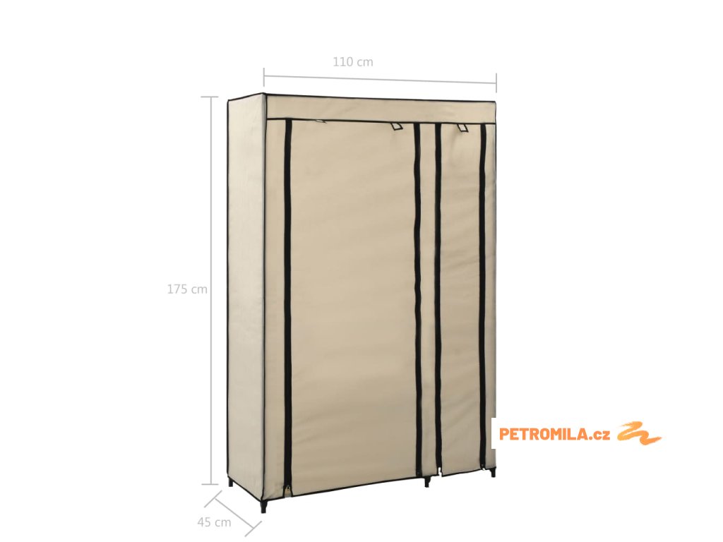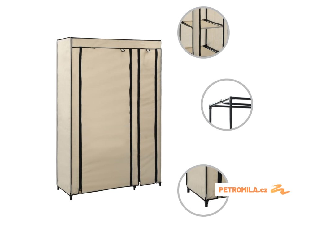 O vaše oblečení bude vždy postaráno. Jelikož je tato skříň skládací, šetří místo a umožňuje snadné sestavení. Dvířka se dají srolovat a připevnit suchým zipem. Dvířka chrání vaše oblečení před prachem a nečistotami. Zipy snadno rozepnete a zapnete. Kryt skříně je zhotovený z fleecové látky a její rám je z ocelových trubek.