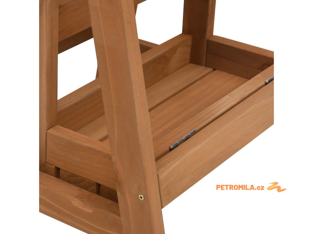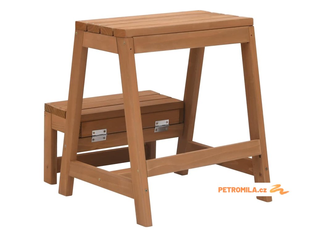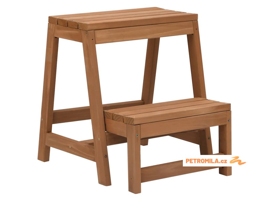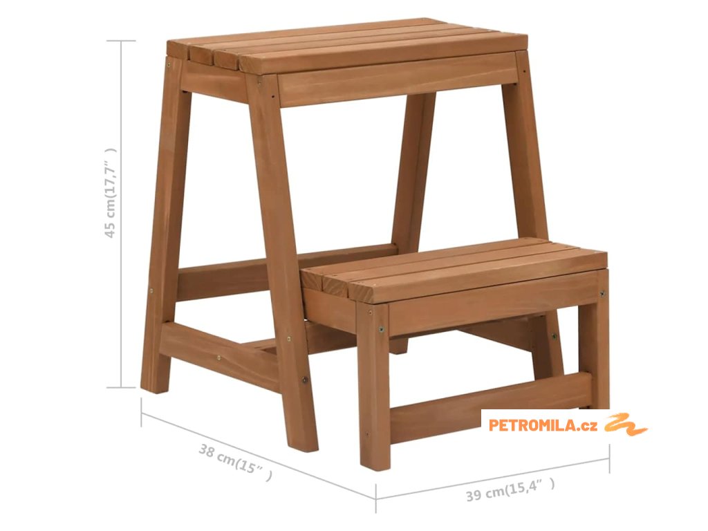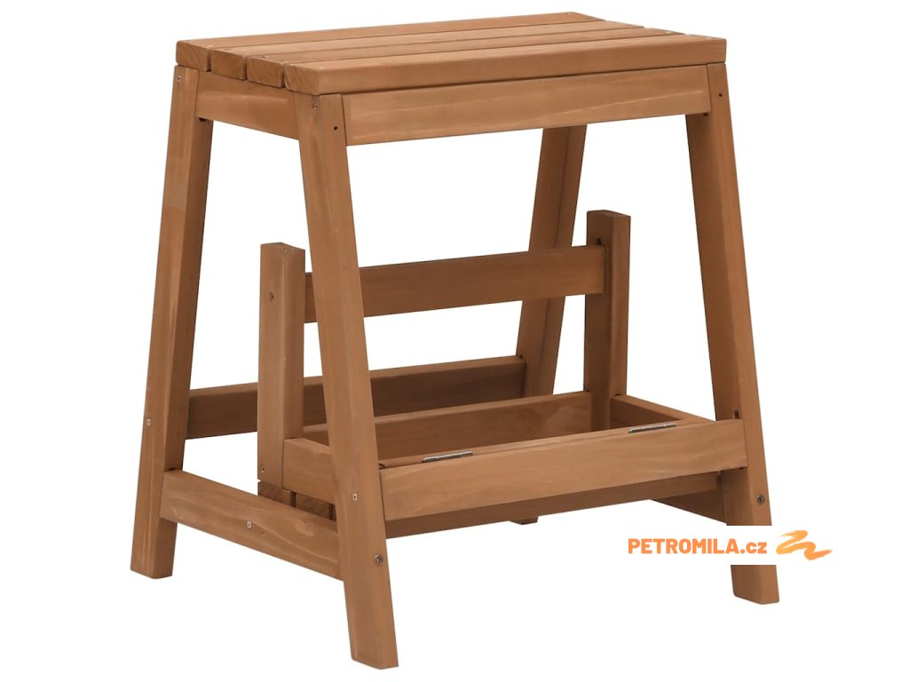 Skládací stolička je vyrobena z masivní jedle, proto je stabilní a odolná. Se skrytým složitelným schůdkem může sloužit různým účelům jako sedák pro spontánní návštěvy, schůdky pro dosažení vysokých poliček a skříněk nebo jako malý úložný nábytek v obývacím pokoji nebo ložnici. Dřevěná složitelná stolička se navíc snadno skladuje, když není používána.
