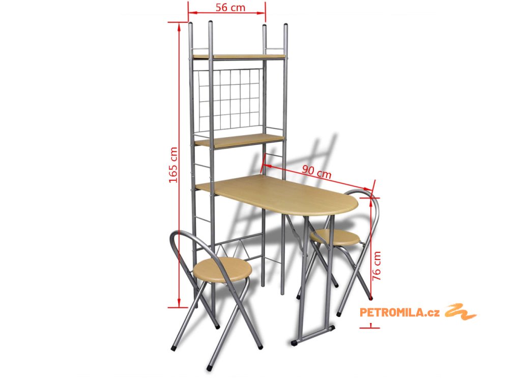- Rozměry stolu (v rozložené poloze): 56 x 90 x 165 cm (D x Š x V)