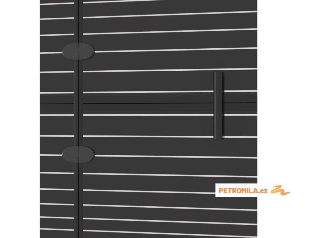 - Materiál: ESG (jednovrstvé bezpečnostní sklo) s černým pruhovým potiskem, hliník