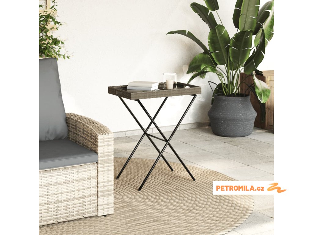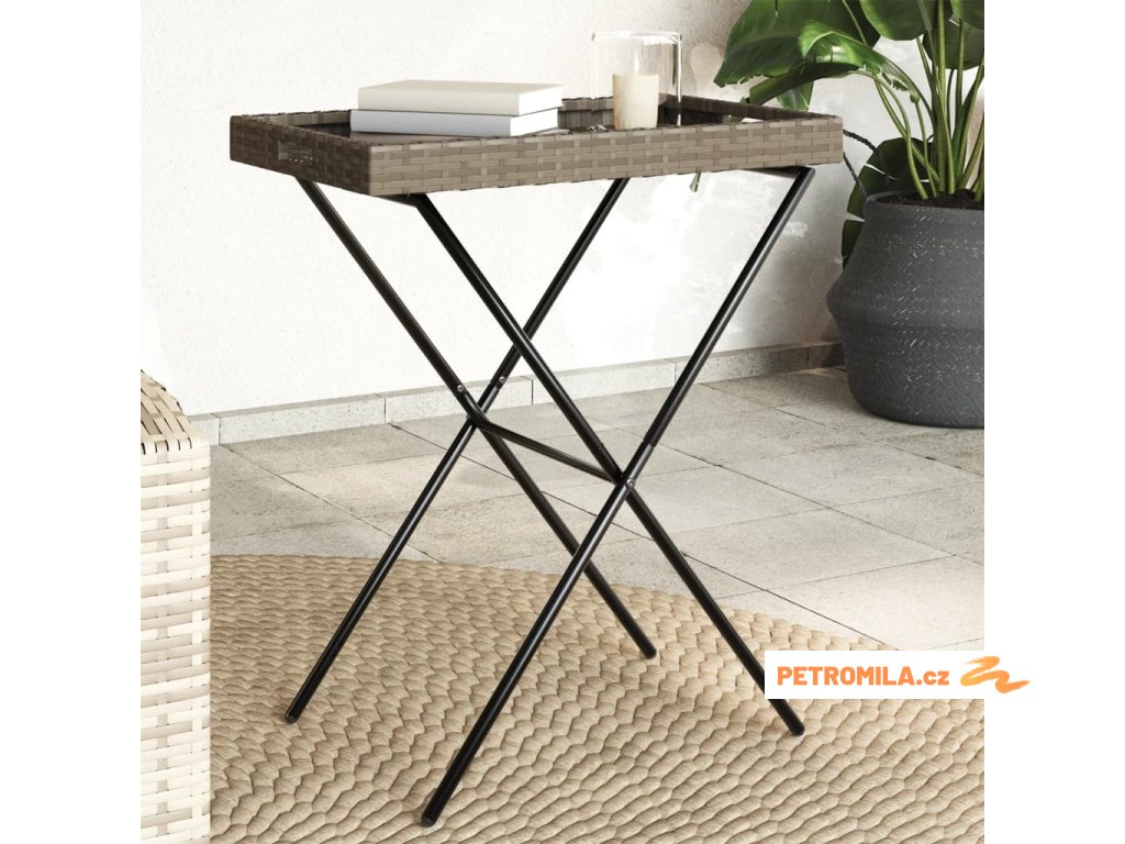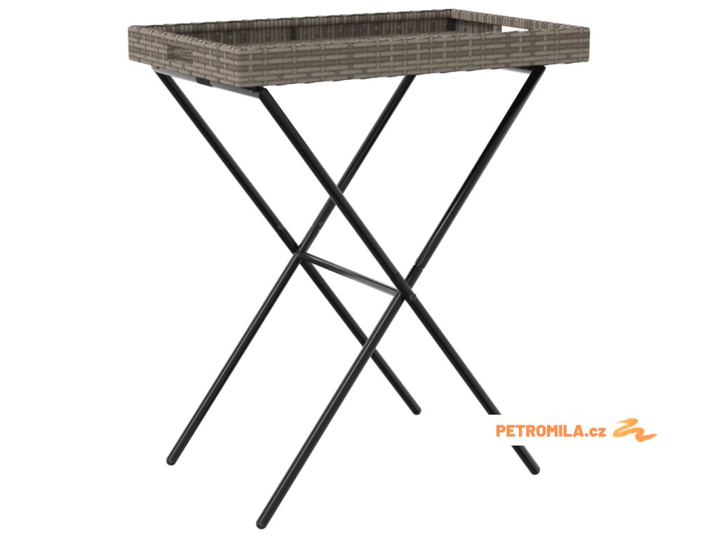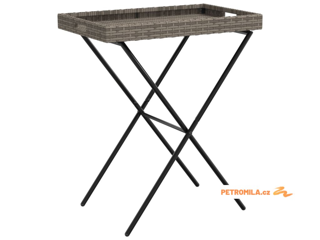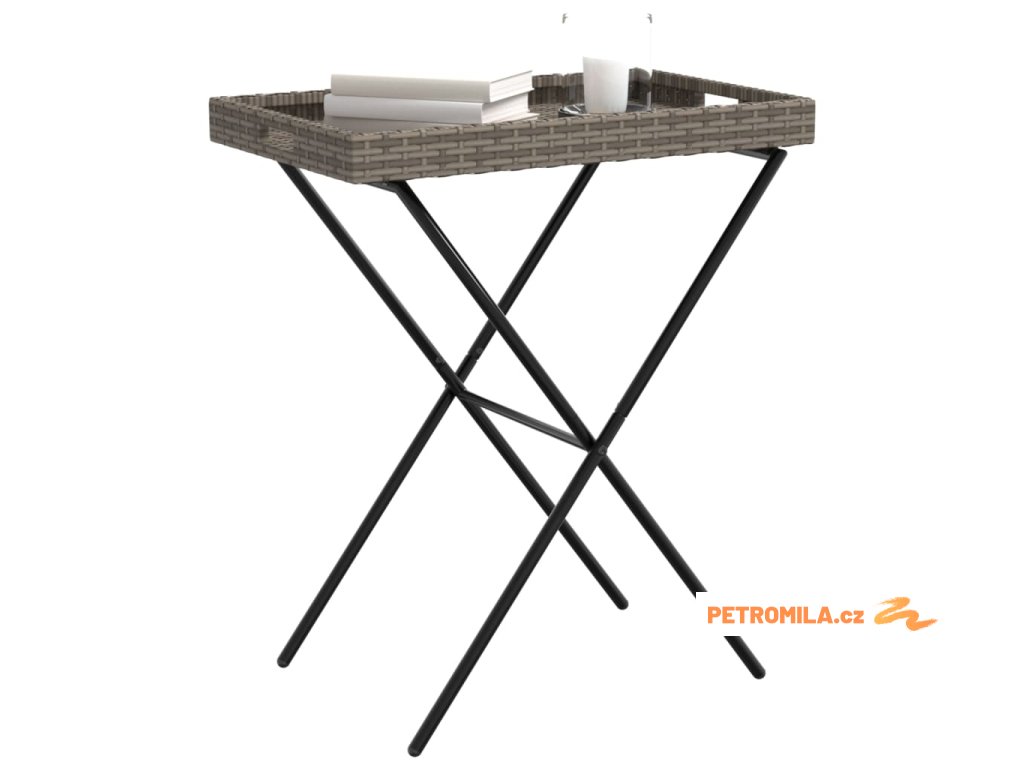 Skládací stůl s podnosem šedý 65 x 40 x 75 cm polyratan