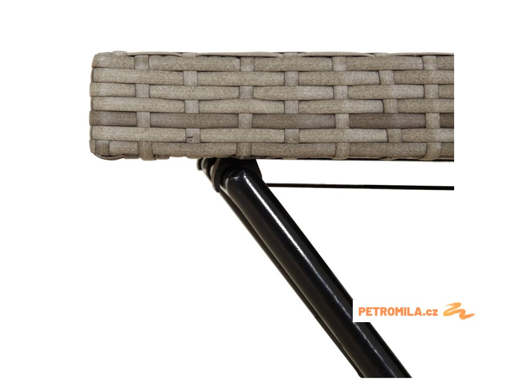 - Materiál: plochý PE ratan, práškově lakovaná ocel, PC deska