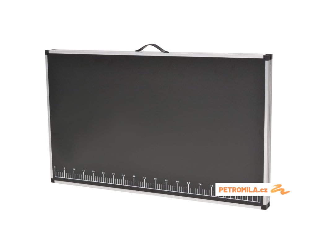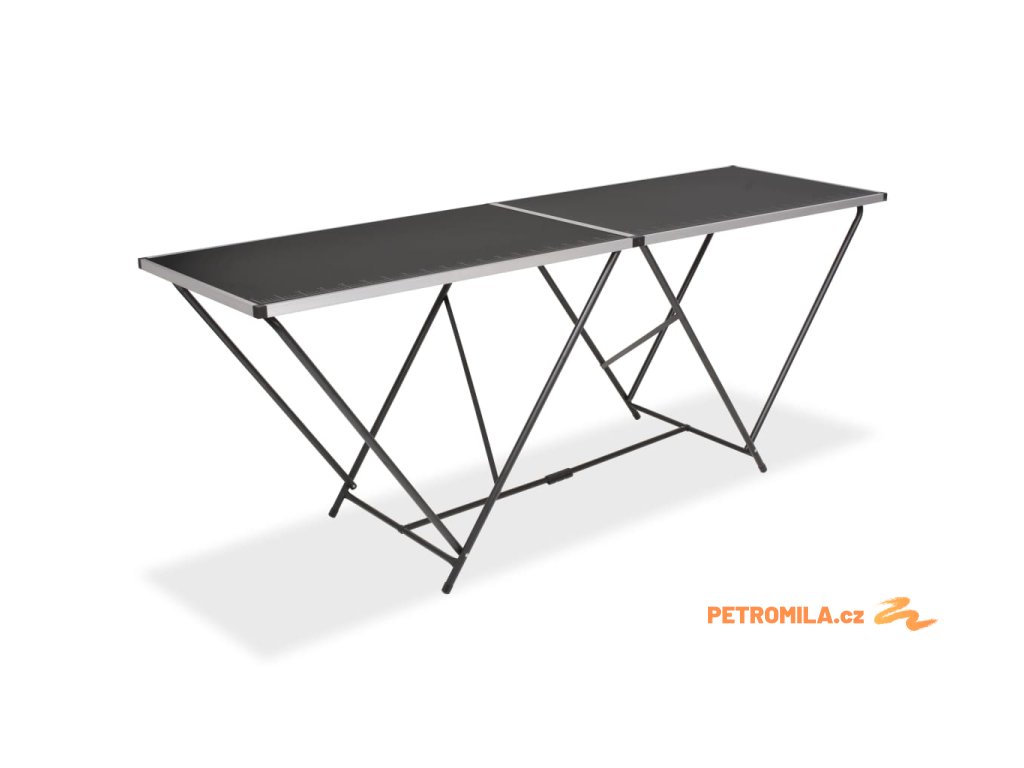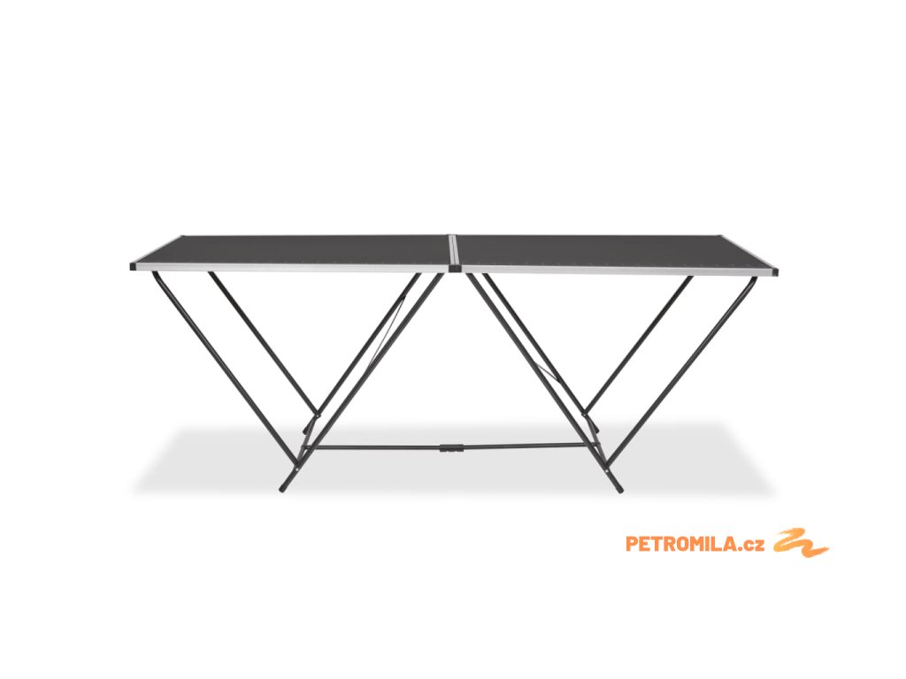 Rám tohoto pracovního stolu je vyrobený z pevného a lehkého hliníku a má lehkou a omyvatelnou černou MDF desku s maximální nosností 20 kg. Stůl má ocelové trubkové nohy do tvaru W, které zajišťují jeho pevnost a odolnost. Pokud stůl právě nepoužíváte, můžete ho snadno složit pro skladování a přepravu.