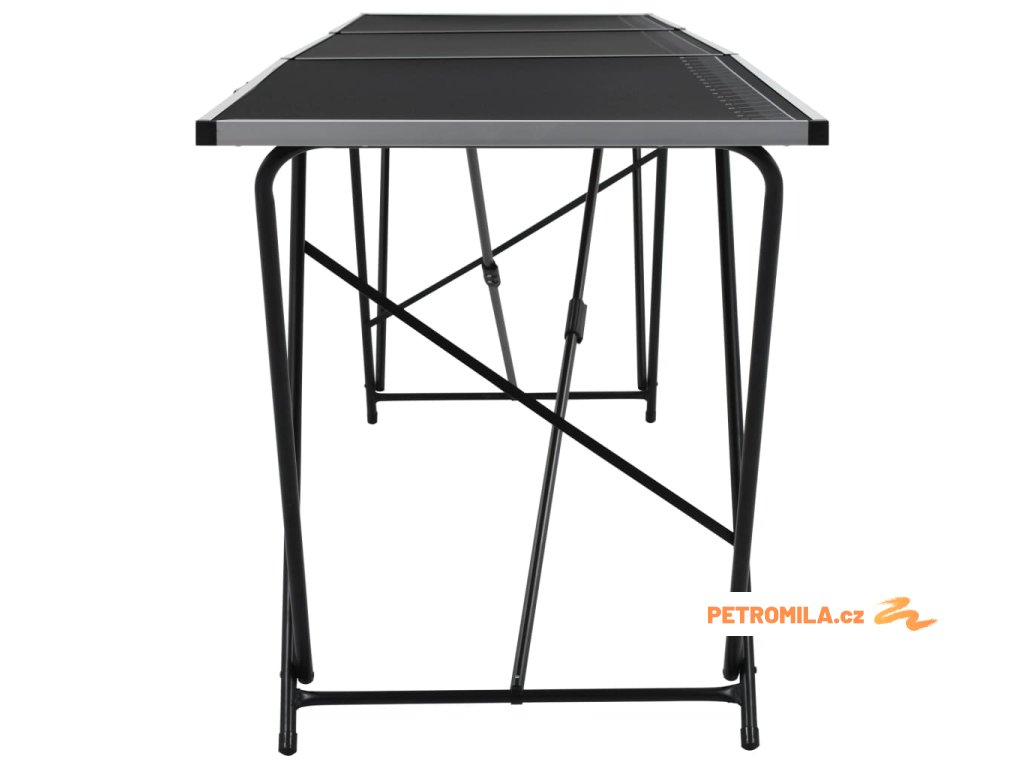 Rám tohoto pracovního stolu je vyrobený z pevného a lehkého hliníku a má lehkou a omyvatelnou černou MDF desku s maximální nosností 30 kg. Stůl má ocelové trubkové nohy do tvaru W, které zajišťují jeho pevnost a odolnost. Pokud stůl právě nepoužíváte, můžete ho snadno složit pro skladování a přepravu.