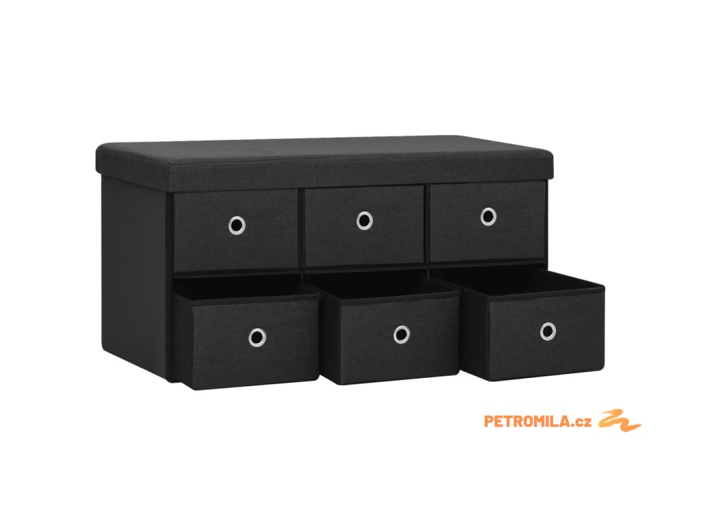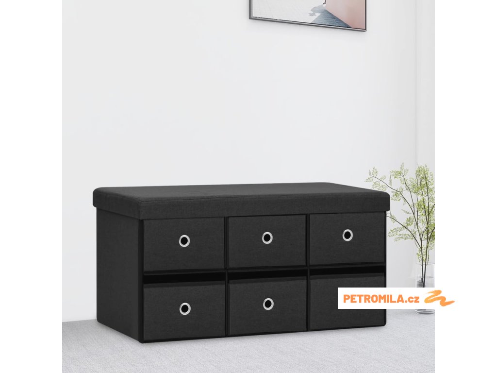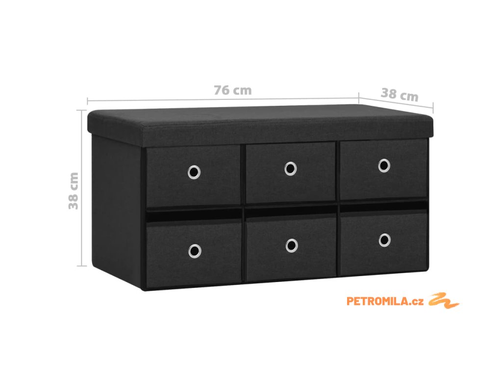 Skládací úložná lavice černá 76 x 38 x 38 cm umělý len