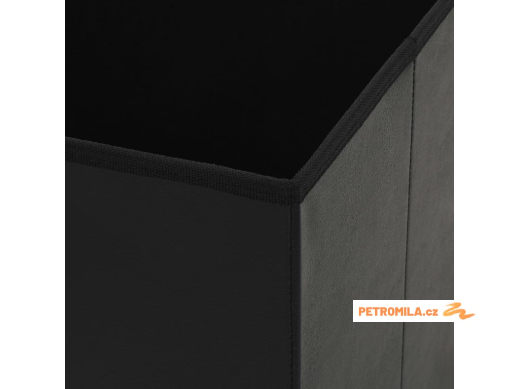 Úložné stoličky jsou vyrobeny z MDF a jsou čalouněné umělou kůží. Jejich černá barva snadno schová skvrny nebo prach. Stoličky jsou vybaveny odnímatelnými sedáky. Poskytnou vám spoustu prostoru pro ukládání hromady nejrůznějších věcí, které si nepřejete mít na očích, ale přesto je chcete mít po ruce. Pro chvíle, kdy tyto úložné truhly nebudete potřebovat, je můžete snadno složit a ušetřit místo. Stoličky je snadné sestavit.