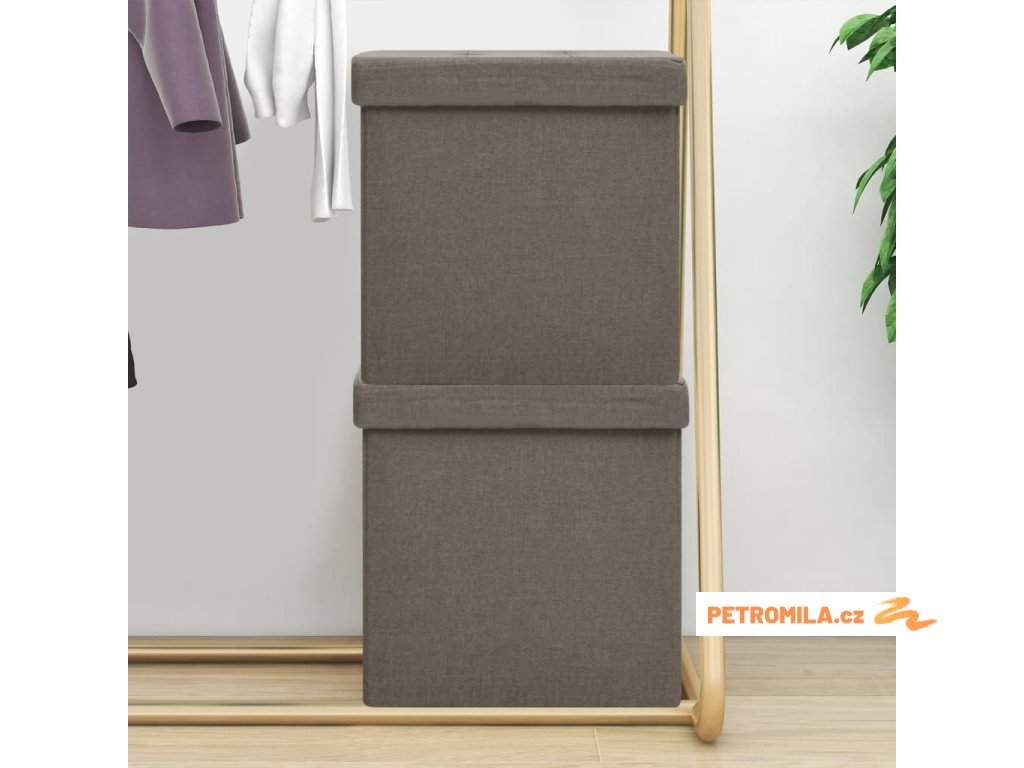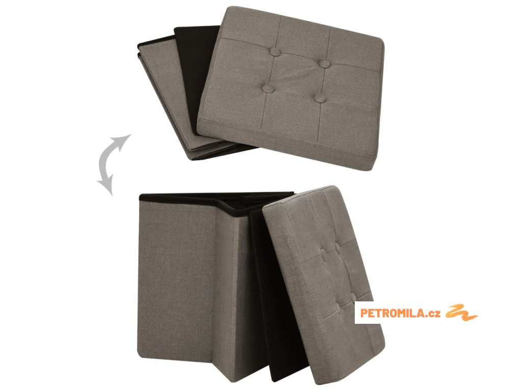 Úložné stoličky jsou vyrobeny z MDF a čalouněny umělým lnem, takže jsou odolné a stabilní. Pěnou polstrované stoličky jsou pohodlné na sezení. Jsou vybaveny odnímatelným sedákem, poskytnou vám tedy dostatek úložného prostoru pro uložení mnoha různých předmětů, které tak budete mít pěkně po ruce. Navíc se dají složit, takže ušetříte místo, když je zrovna nepoužíváte.