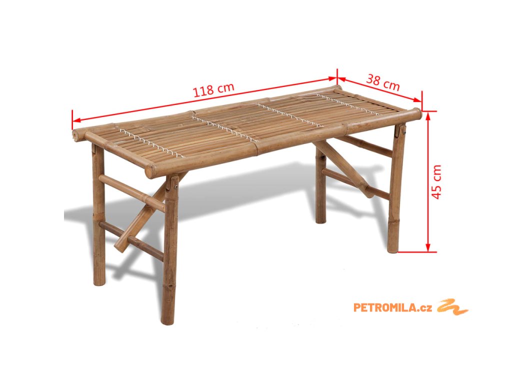 Lavice je skládací, a tím pádem přenosná, a lze ji snadno uložit nebo sestavit. Lavice je vyrobena z bambusu odolného proti povětrnostním vlivům a vodě, takže je odolná a stabilní. Snadno se čistí vlhkým hadříkem.