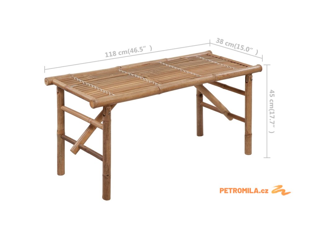 - Rozměry lavice (nesložené): 118 x 38 x 45 cm (D x Š x V)