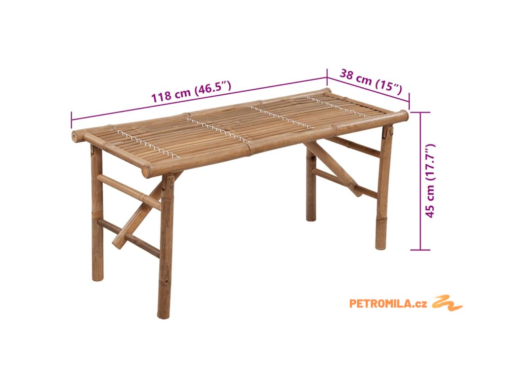 - Rozměry lavice (nesložené): 118 x 38 x 45 cm (D x Š x V)
