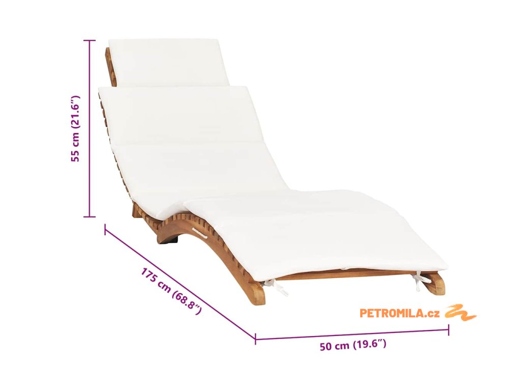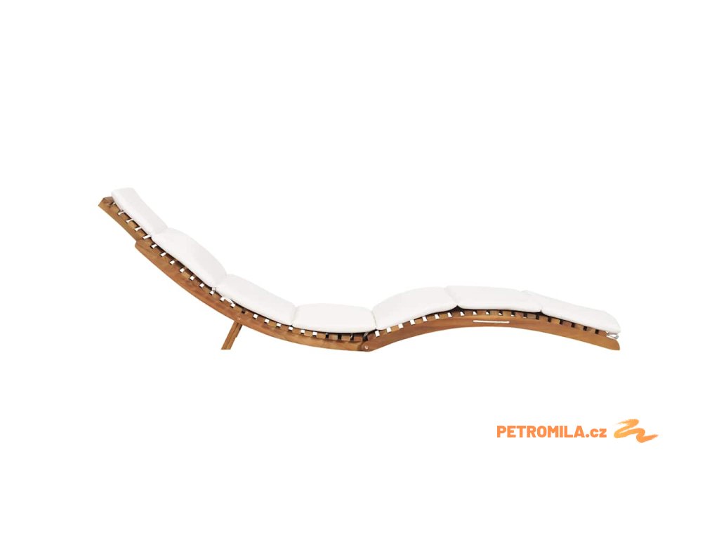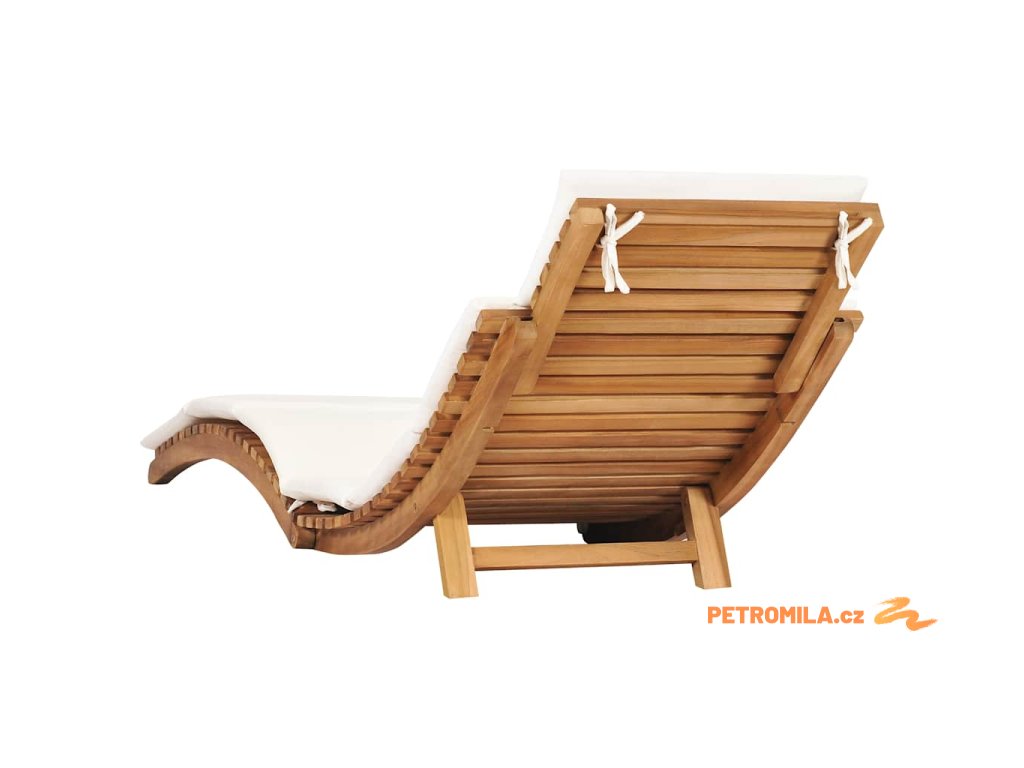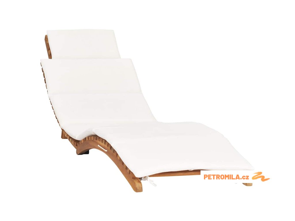 Skládací zahradní lehátko krémově bílé podušky masivní teak