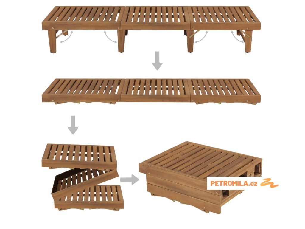 - Materiál zahradního lehátka: masivní akáciové dřevo s olejovou povrchovou úpravou