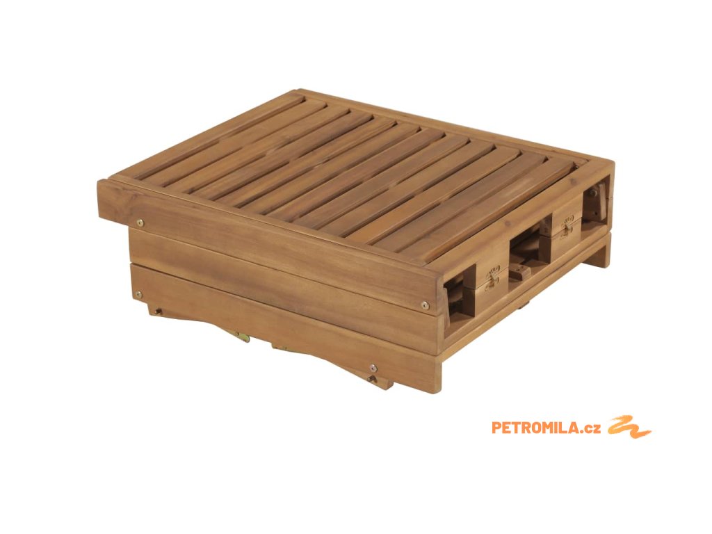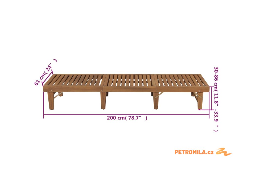 - Materiál zahradního lehátka: masivní akáciové dřevo s olejovou povrchovou úpravou