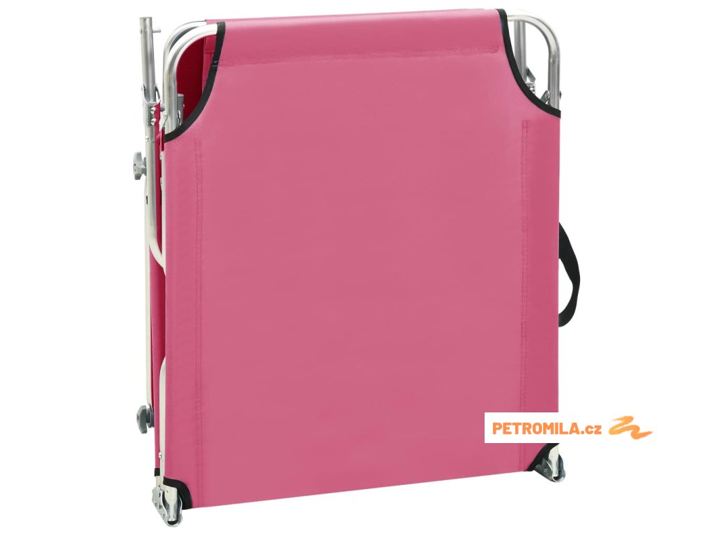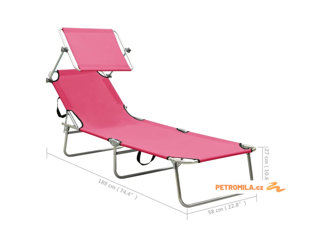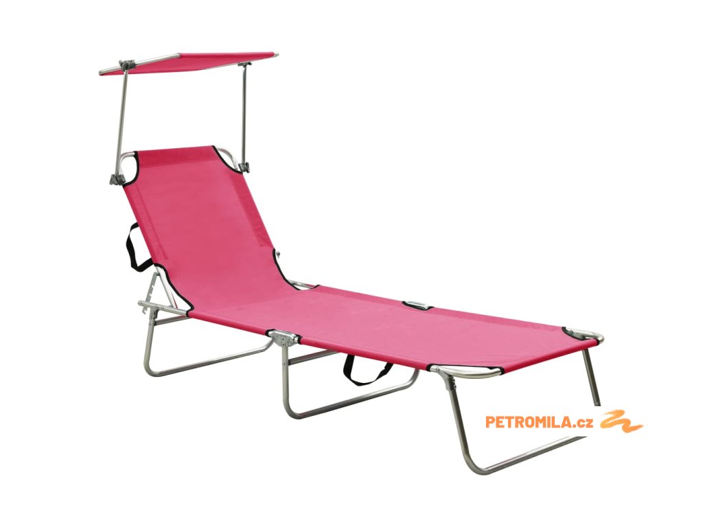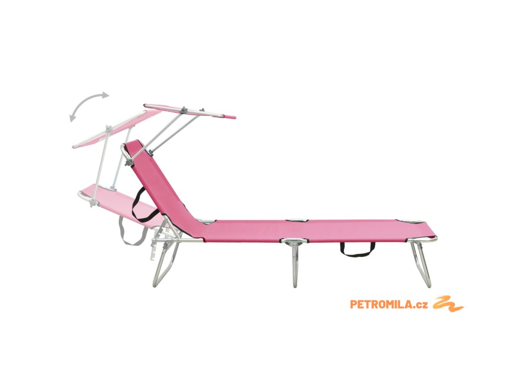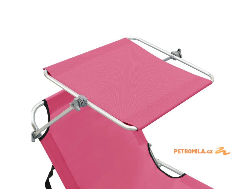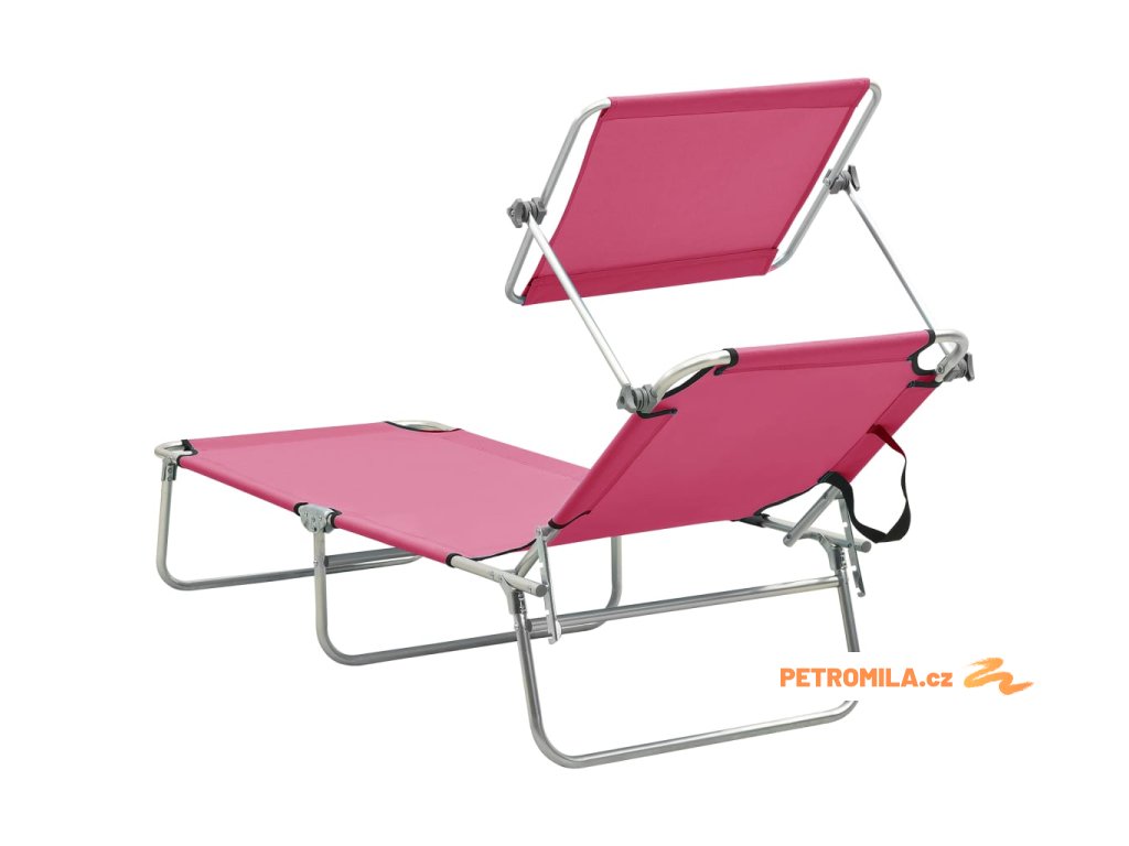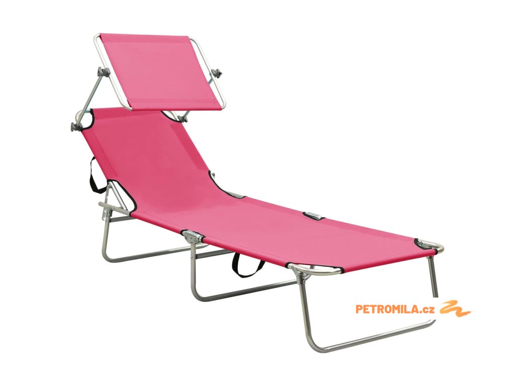 Skládací zahradní lehátko se stříškou ocel fuchsiově růžové