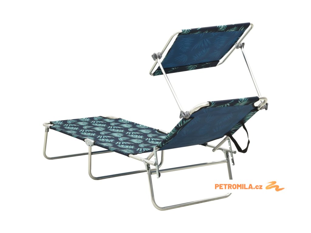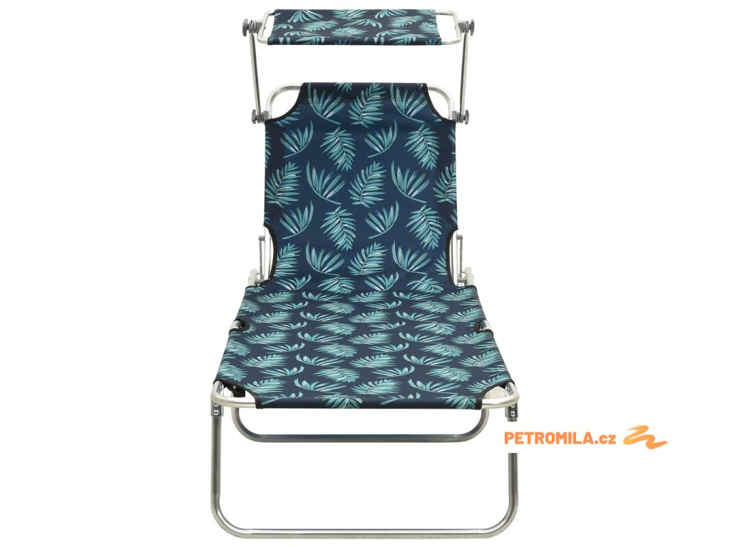 Skládací zahradní lehátko se stříškou ocel potisk s listy