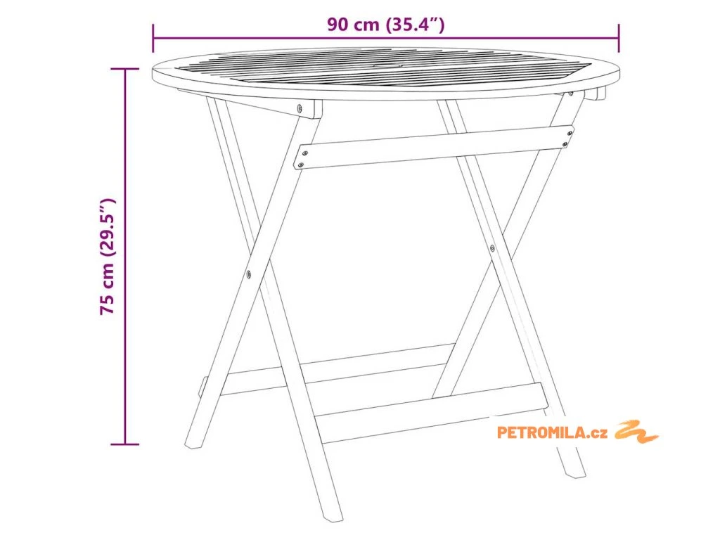 Skládací zahradní stůl Ø 90 x 75 cm masivní eukalyptové dřevo