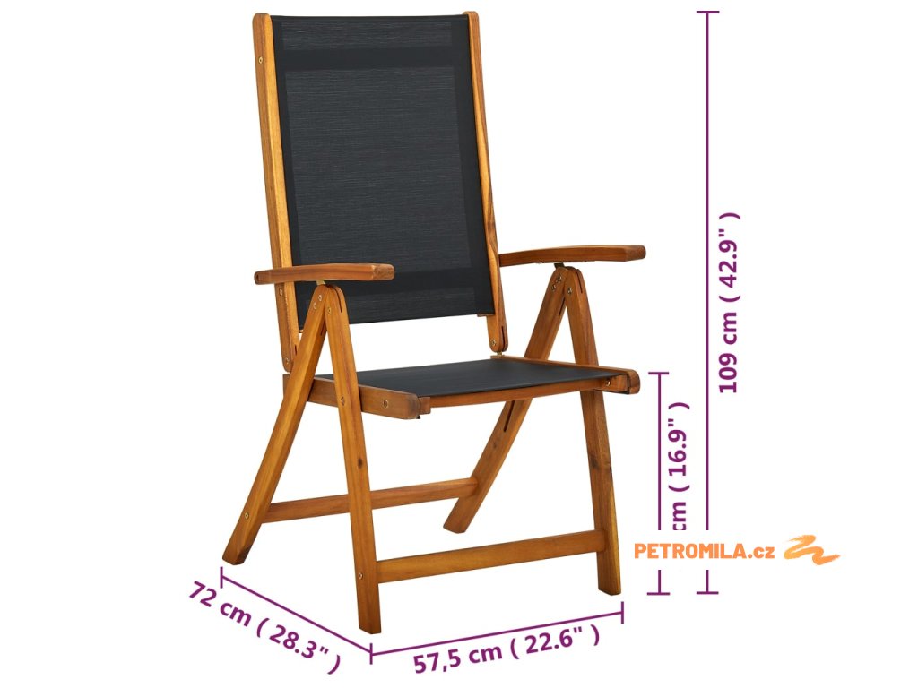 Skládací zahradní židle 4 ks masivní akáciové dřevo a textilen