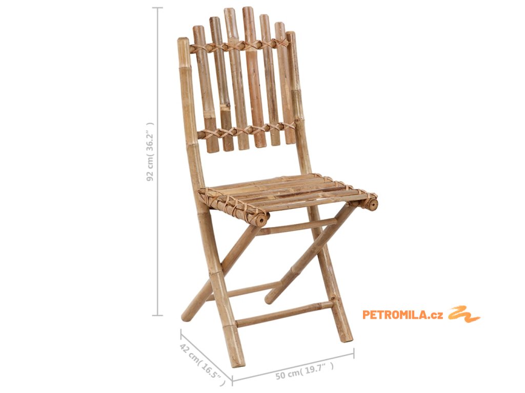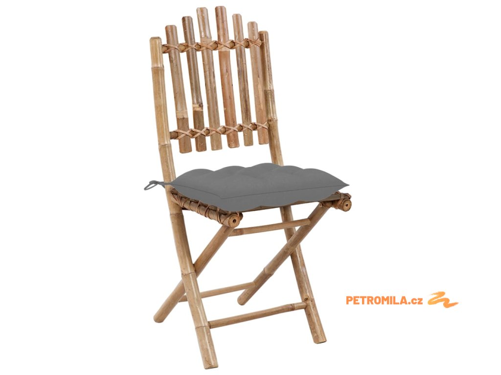 Zahradní židle je zhotovená z masivního bambusu, je tedy pevná a hodně toho vydrží. Skvěle také vzdoruje vodě a dalším klimatickým vlivům a k očištění vám postačí navlhčený hadřík. Jídelní židli lze složit, abyste ušetřili místo, když ji zrovna nepoužíváte. Přiložené podušky se vám při odpočinku postarají o maximální pohodlí. Jsou ušité ze 100% polyesteru, jsou tedy dostatečně silné a odolné, aby zvládly běžné venkovní používání. Každá z nich je opatřená dvěma páry šňůrek, kterými je můžete k židli pevně přichytit.