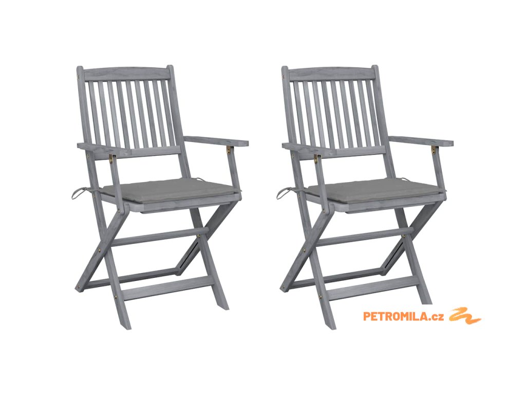 Skládací zahradní židle s poduškami 2 ks masivní akáciové dřevo