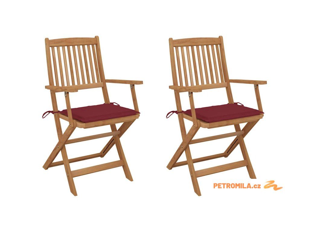 Skládací zahradní židle s poduškami 2 ks masivní akáciové dřevo
