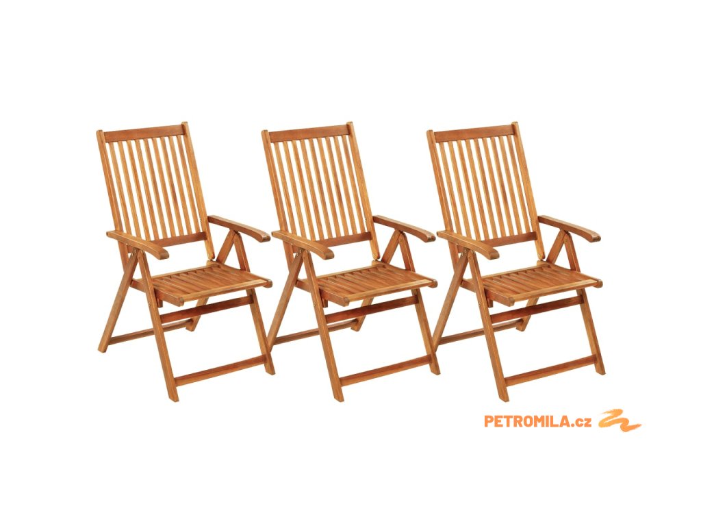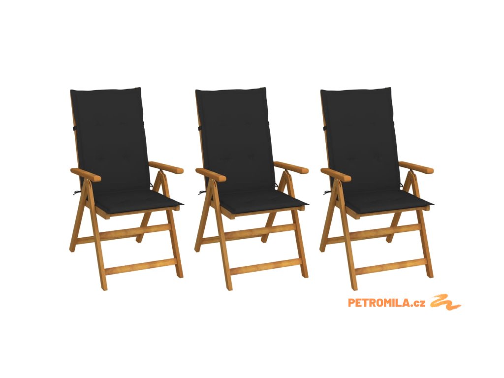 Skládací zahradní židle s poduškami 3 ks masivní akáciové dřevo
