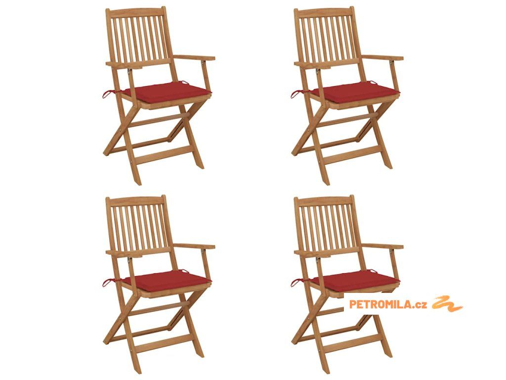 Skládací zahradní židle s poduškami 4 ks masivní akáciové dřevo