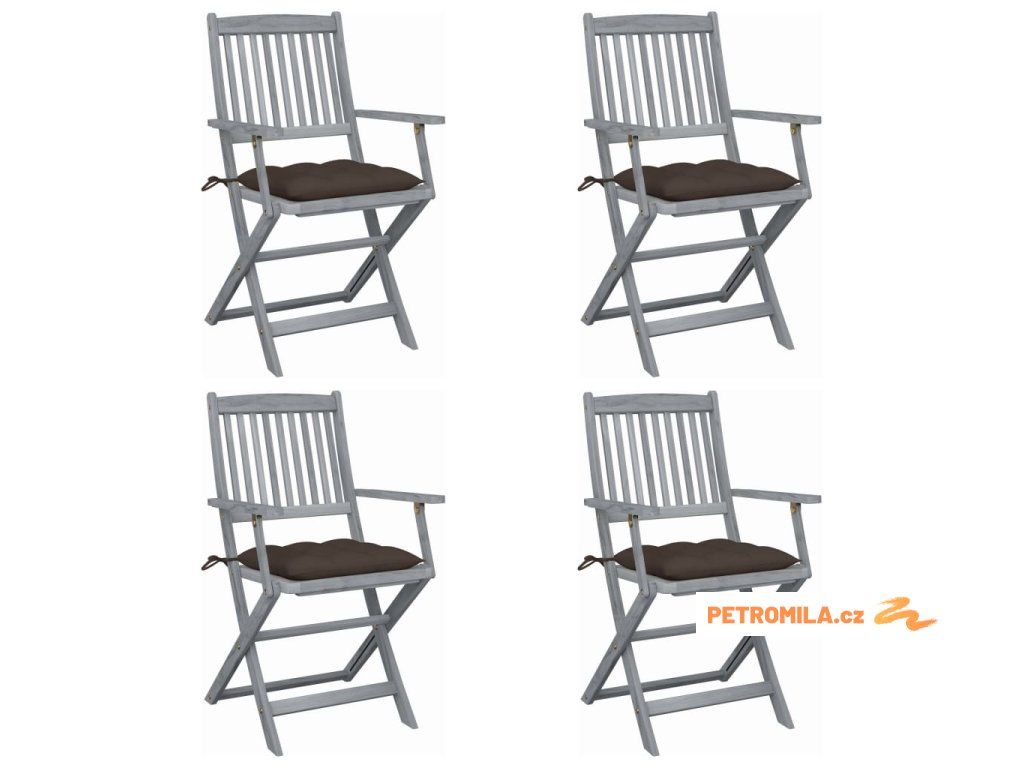 Skládací zahradní židle s poduškami 4 ks masivní akáciové dřevo