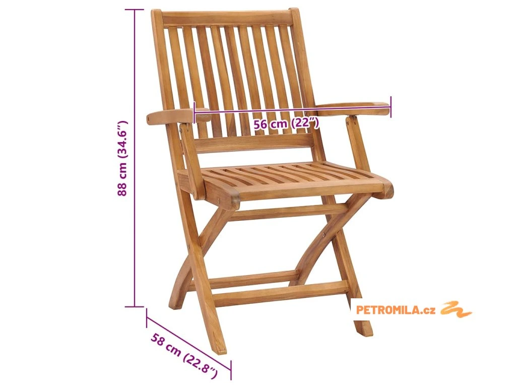 - Rozměry židle (ve složeném stavu): 56 x 113 x 12 cm (Š x H x V)