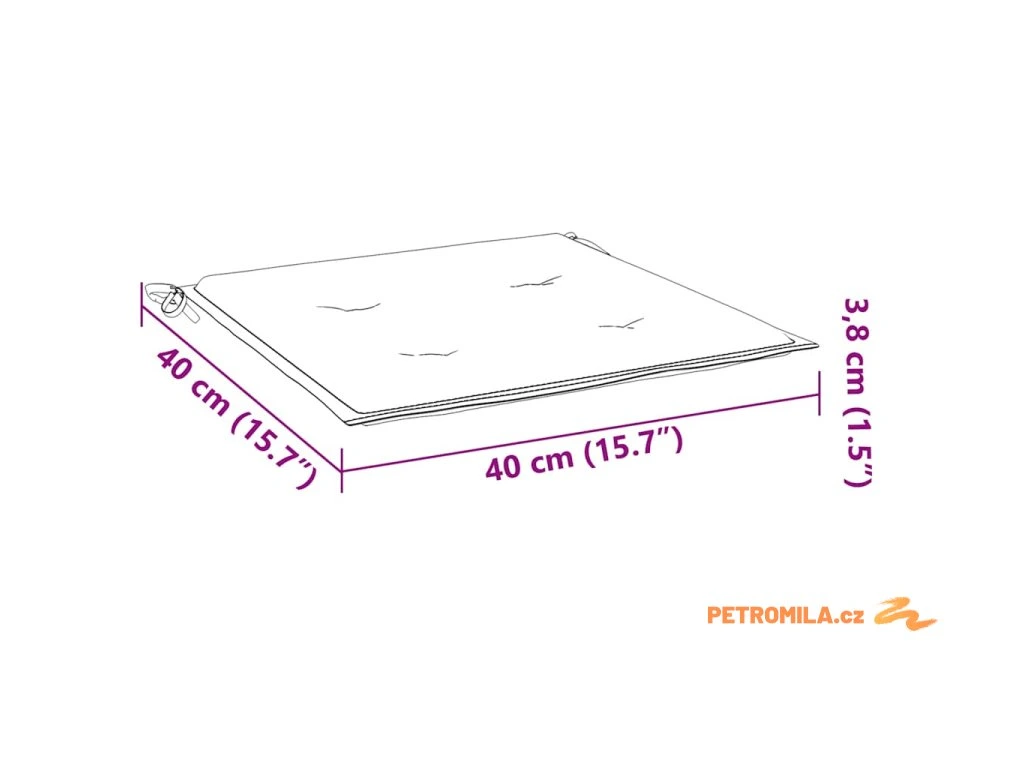 - Rozměry podušky: 40 x 40 x 4 cm (D x Š x T)