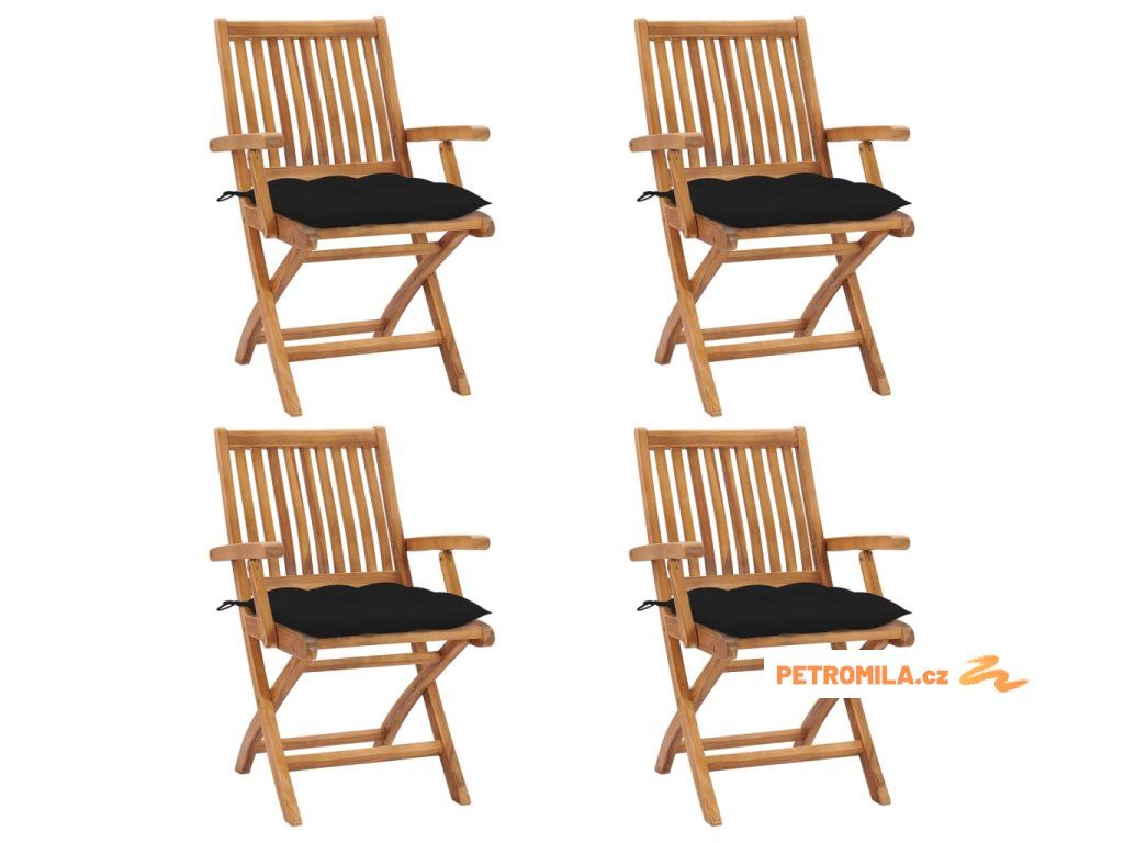 Skládací zahradní židle s poduškami 4 ks masivní teak