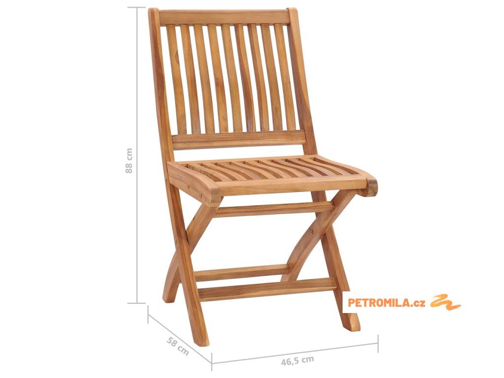 - Rozměry židle (složené): 46,5 x 108 x 12 cm (Š x H x V)