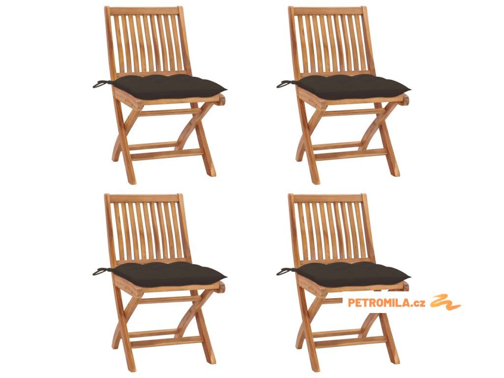 Skládací zahradní židle s poduškami 4 ks masivní teak