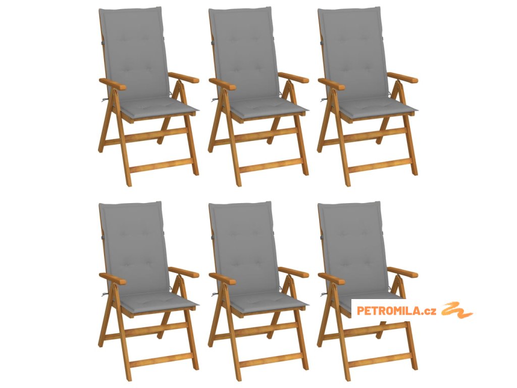 Skládací zahradní židle s poduškami 6 ks masivní akácie