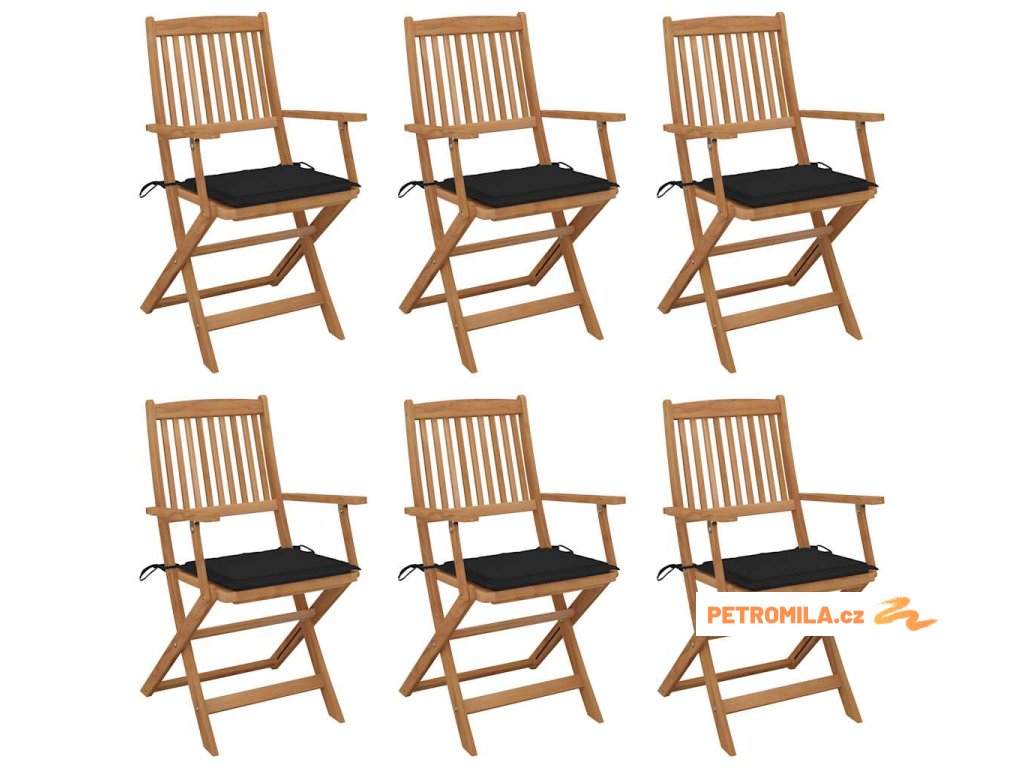 Skládací zahradní židle s poduškami 6 ks masivní akácie
