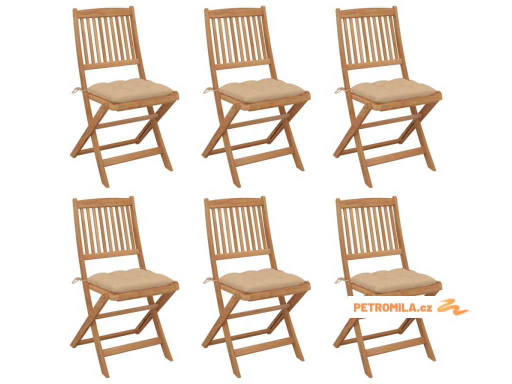 Skládací zahradní židle s poduškami 6 ks masivní akácie