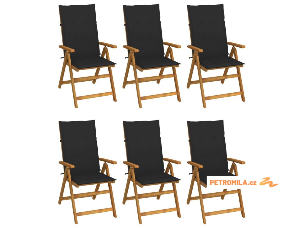 Skládací zahradní židle s poduškami 6 ks masivní akácie