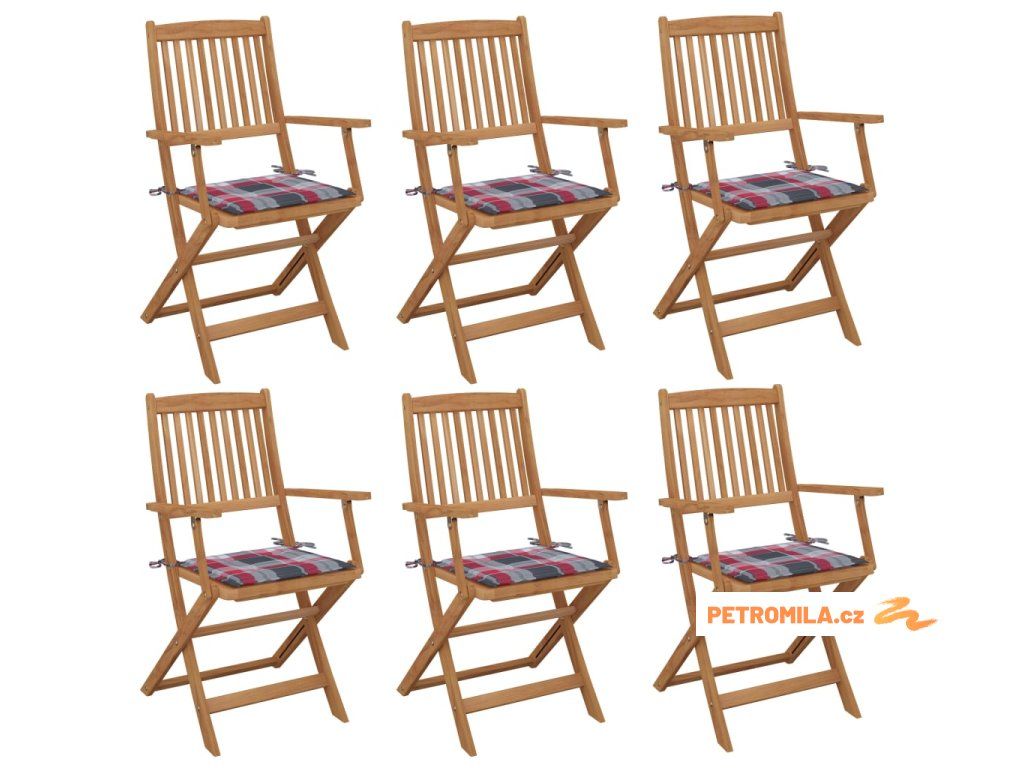 Skládací zahradní židle s poduškami 6 ks masivní akáciové dřevo
