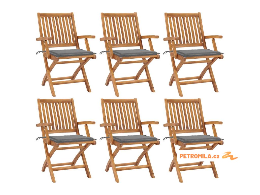 Skládací zahradní židle s poduškami 6 ks masivní teak