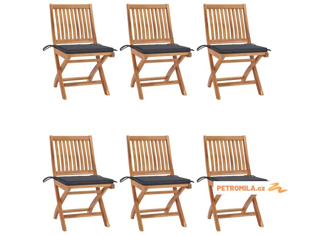 Skládací zahradní židle s poduškami 6 ks masivní teak