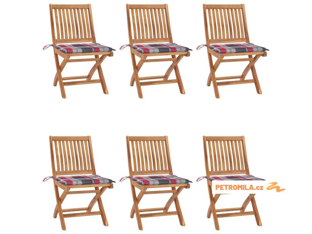 Skládací zahradní židle s poduškami 6 ks masivní teak