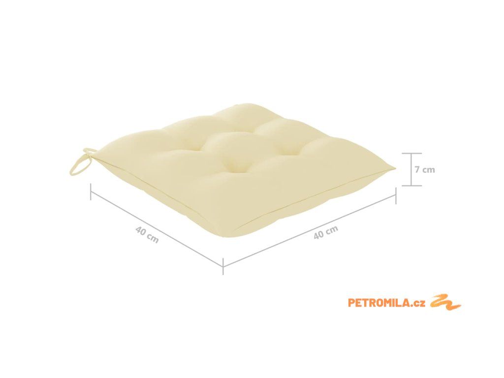 - Rozměry podušky: 40 x 40 x 7 cm (D x Š x T)