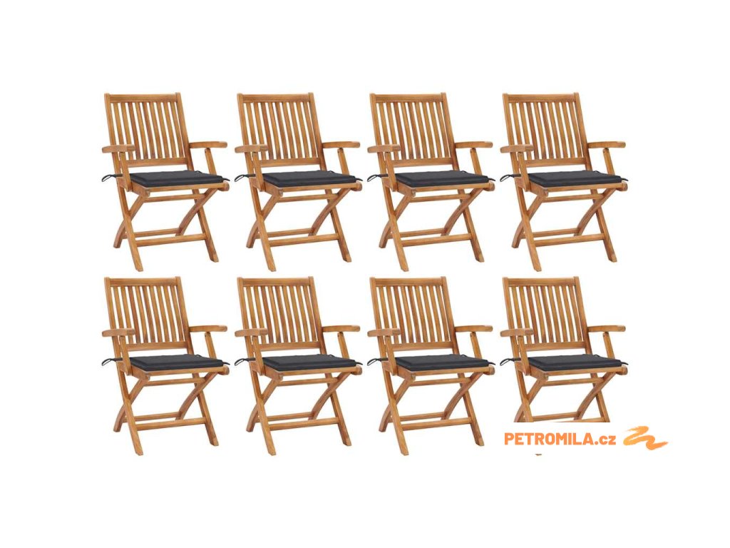 Skládací zahradní židle s poduškami 8 ks masivní teak