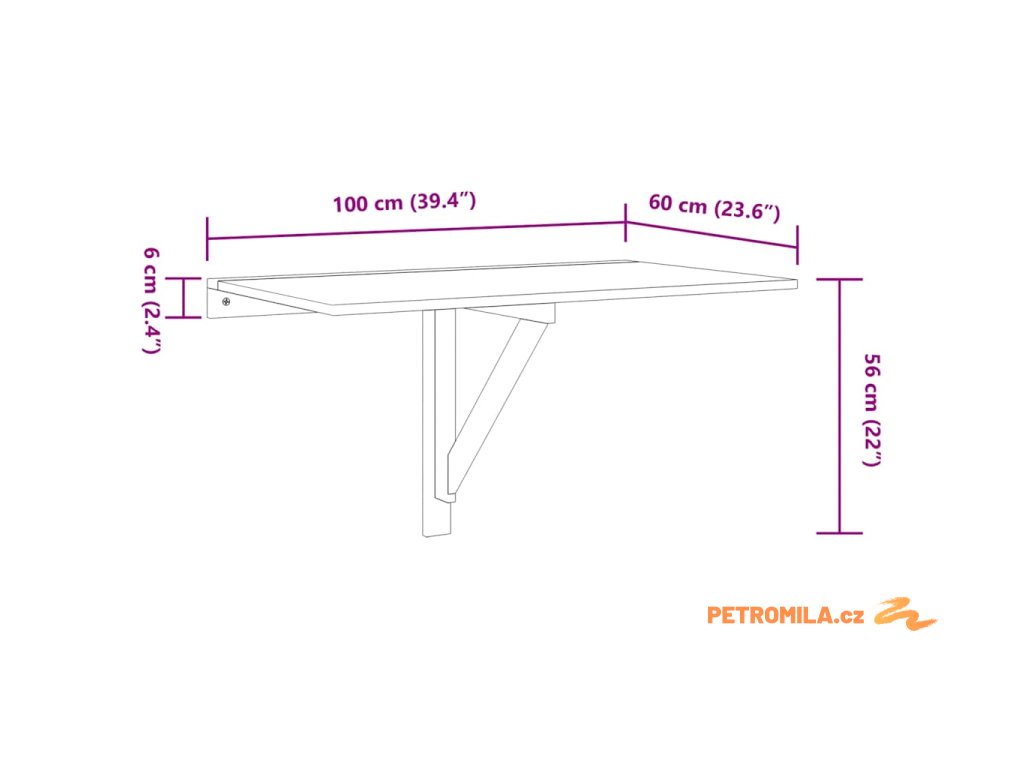 Sklápěcí nástěnný stolek dub 100 x 60 cm