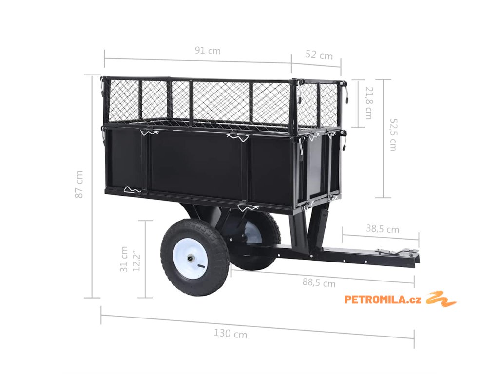 Sklápěcí přívěsný vozík pro zahradní sekačku nosnost 150 kg