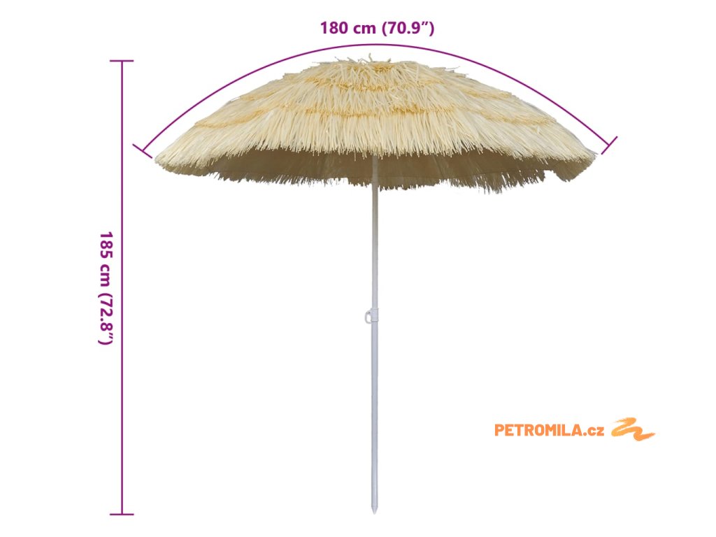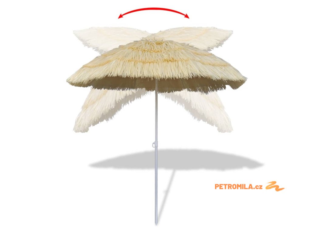 Tento plážový slunečník do každého počasí má průměr přibližně 1,8 m. Díky sklápěcímu designu a jedinečnému vzhledu je ideální do restaurací, plážových klubů, plážových barů, ale i na vaši zahradu za domem. Lze jej rovněž využít jako dekorativní a funkční doplněk bazénů, hotelů nebo wellness zařízení.